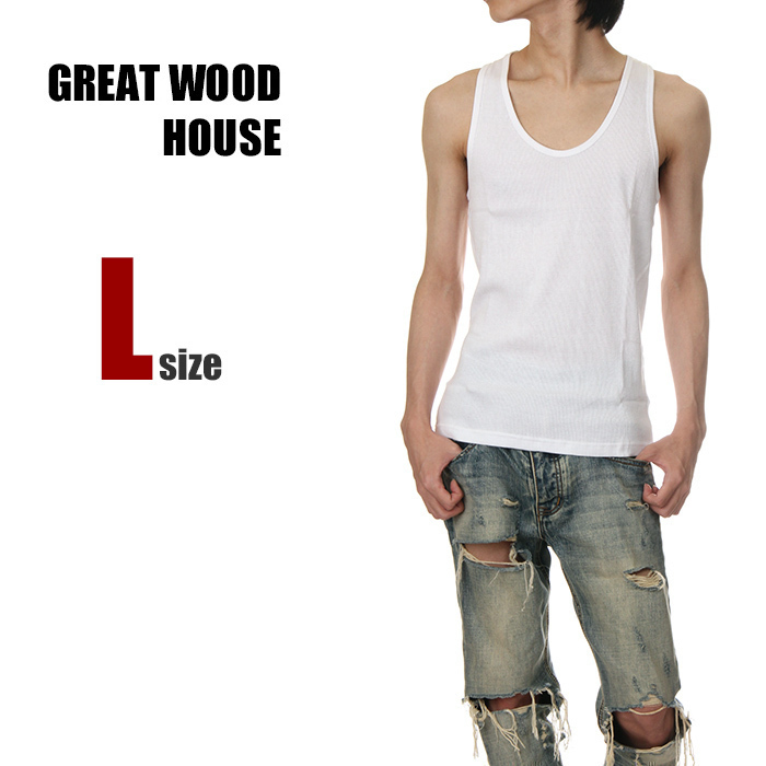 - 【新品】GREAT WOOD HOUSE タンクトップ L 白 ホワイト メンズ テレコ 無地 フィット 送料無料