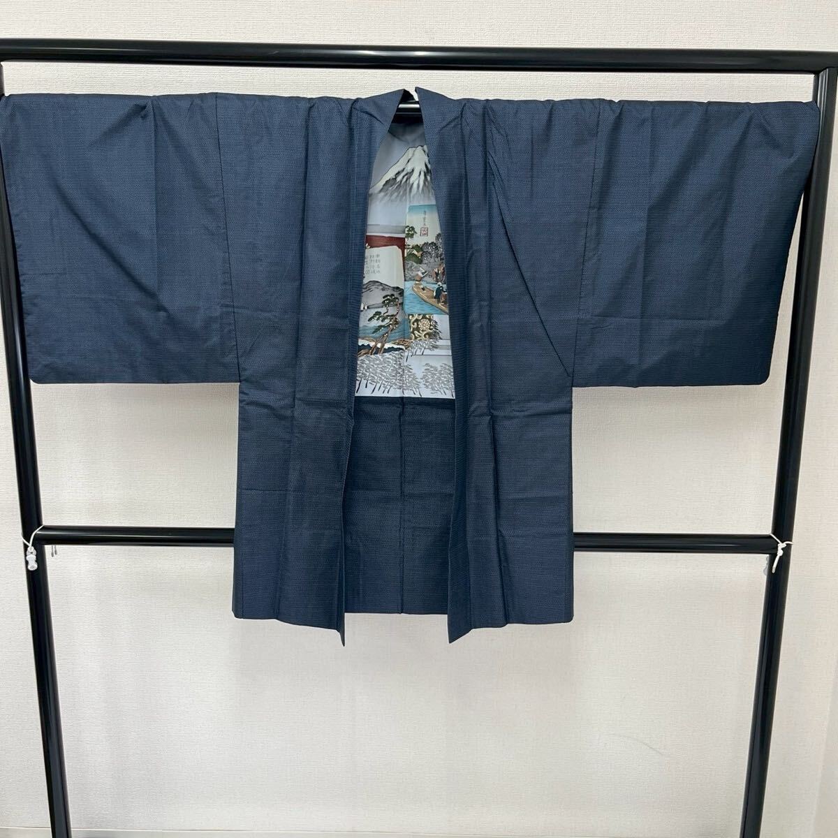 - 男性着物 本場大島紬 羽織 泥藍染 裄72 亀甲絣 正絹 着物 W-4797