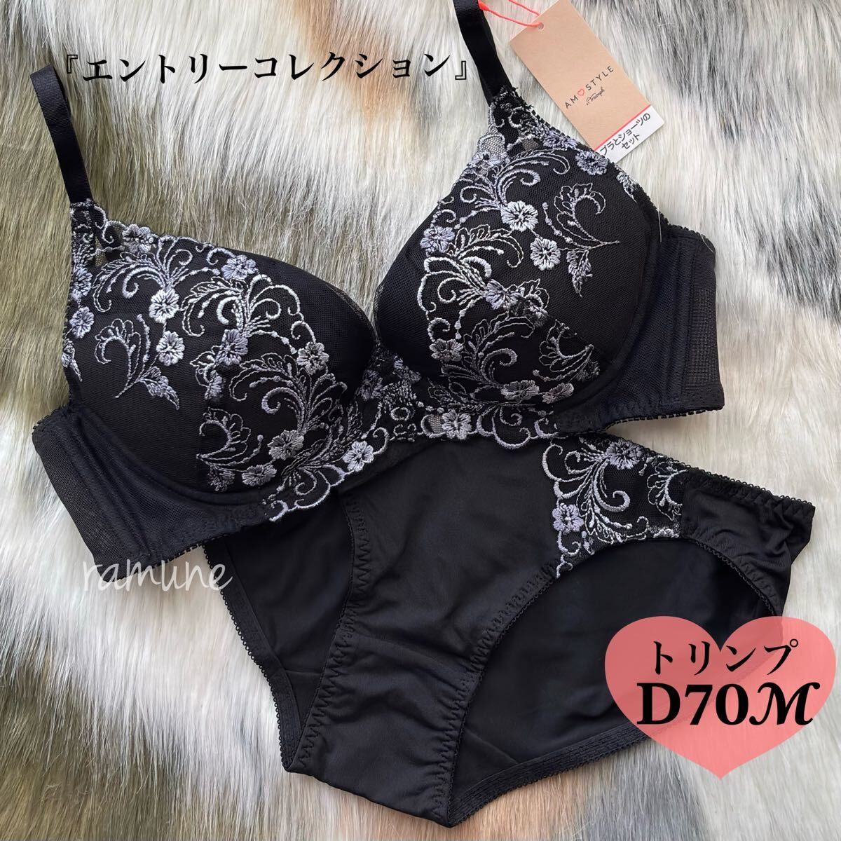 - 【トリンプ*D70M*黒】新品 Triumph 寄せブラ&ショーツセット ブラジャーショーツ クラシックフラワー パッド付き 谷間を作る Dカップ