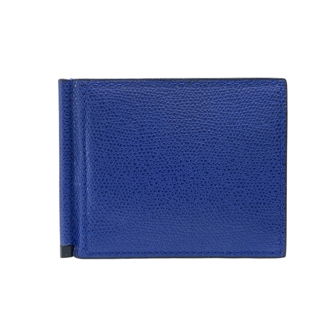 > 美品 ヴァレクストラ SGSR0080028 LRDWG99 二つ折り財布 マネークリップ カードケース パスケース レザー ネイビー Valextra