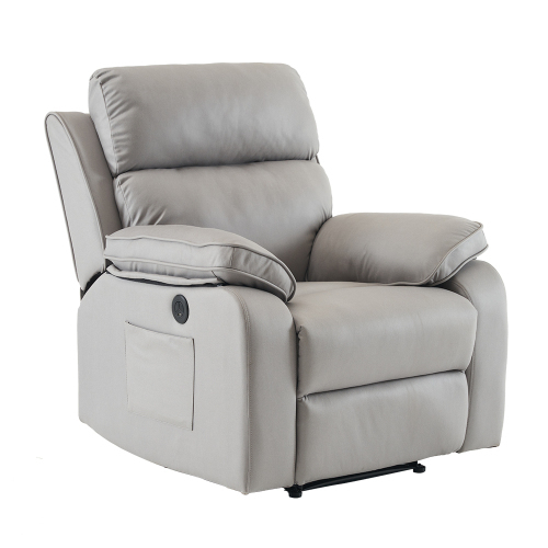 - リクライニングソファー 電動リクライニングソファ オットマン一体型 1人掛け USBポート付き 電動ソファ 耐圧分散 【ライトグレー KU835