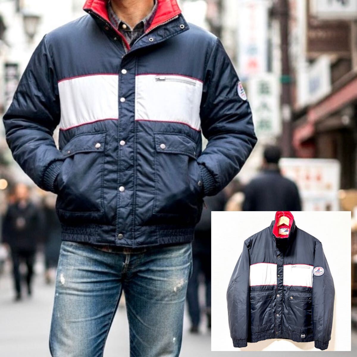 - レア!日本製◎【BRAUN】ブラウン ナイロン ジャケット スキー ウェア 西ドイツ 昭和 レトロ 古着 ビンテージ 濃紺 メンズ LL /Y36865SS