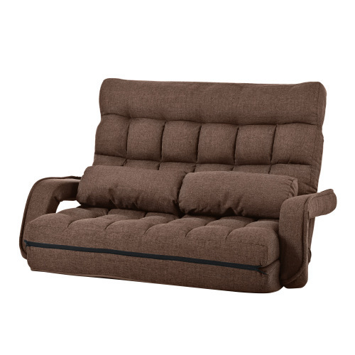 - 座椅子 二人掛け 連動肘つき リクライニングソファ 折りたたみ 座いす 2人掛けソファー ハイバック リクライニングチェア 【ブラウ KU440