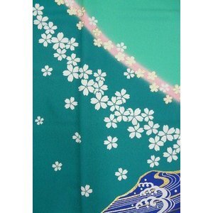 - 訪問着 付下げ 洗える 反物 絵羽 踊り着物 緑に桜 516