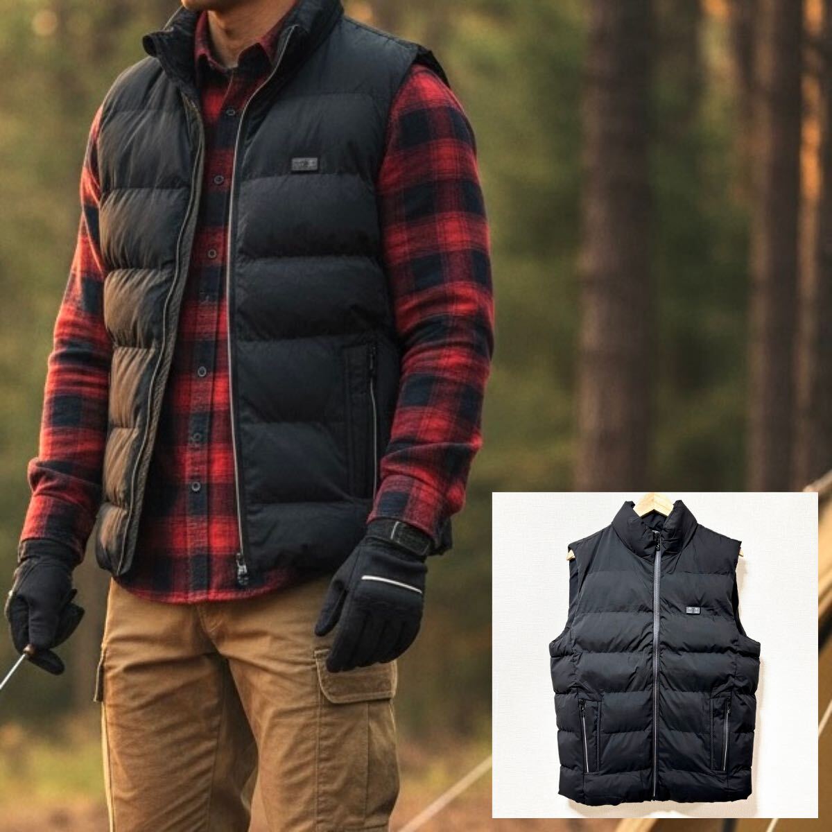 > 屋外作業に◎【Padded Vest】中綿 ジップ ベスト 裏アルミ アウター 防寒 電熱 アウトドア キャンプ ブラック 黒 メンズ L 相当/Y36869SS