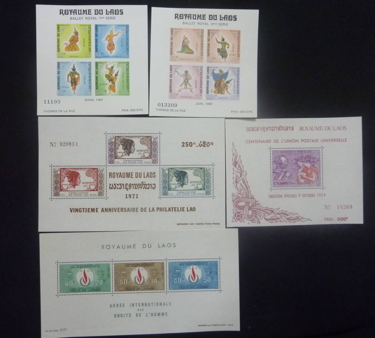 - 古い 世界各国 外国 切手 ラオス LAOS の切手 小型シート 計6枚