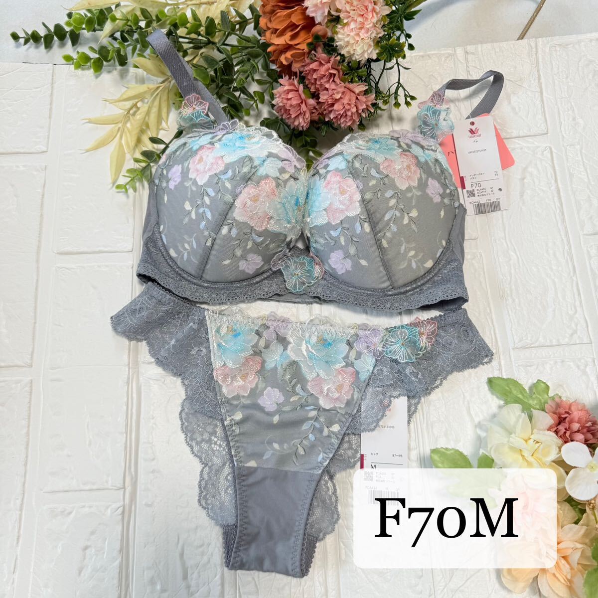> 【新品】wacoal L'ge ルジェ 32 ブラ ソングセット F70M GY ワコール サルート salute Tバックショーツ