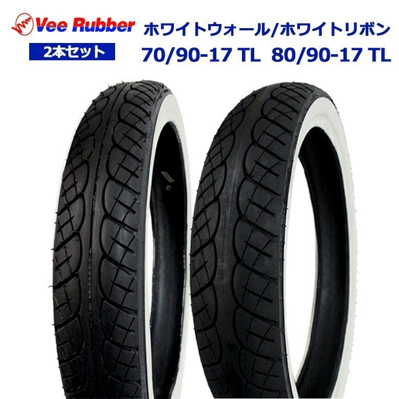 - 70/90-17 TL / 80/90-17 TL 17インチ タイヤ 前後2本セット VEERUBBER ホワイトリボン スーパーカブ C125