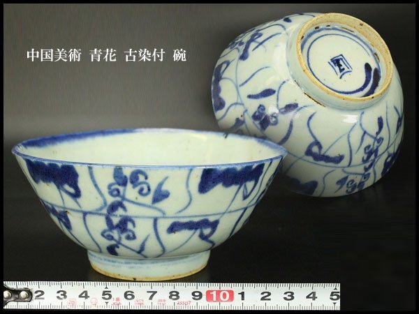 - 【銀閣】中国美術 青花 古染付 碗 φ14cm 旧家蔵出 送料無料(YC165)
