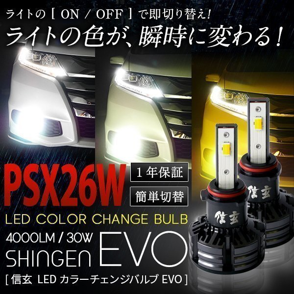 > ライトの色が瞬時に変わる! 通常 3色切替 カラーチェンジバルブ LED 信玄 EVO PSX26W 4000LM 30W 1年保証 簡単操作 3000K 4300K 6000K