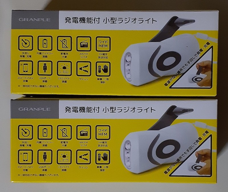 > 6813 未使用未開封 2個 GRSRLT 懐中電灯 小型ライト ラジオ付き 充電機能付き 災害対策 ダイナモ 手回し発電 小型ラジオライト GRANPLE