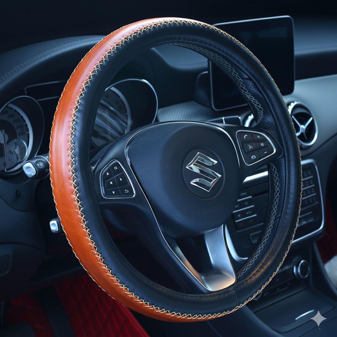 - ハンドルカバー ステアリング カバー 運転 ドライブ 38cm ブラウン ブラック ジムニー ハスラー レトロ リング ブラウン