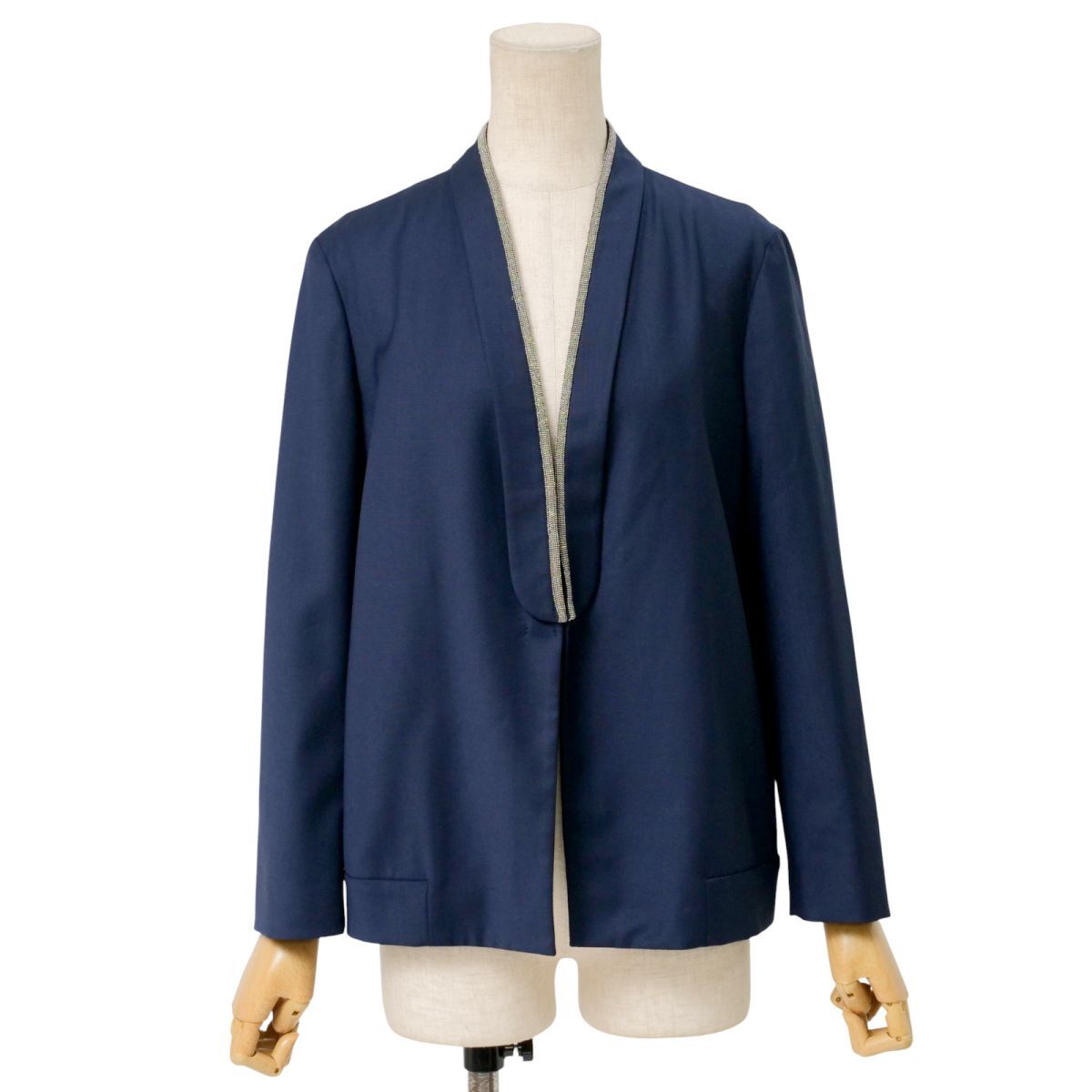 > MI1932#イタリア製*ブルネロクチネリ*BRUNELLO CUCINELLI*ショールカラージャケット*ビジュー装飾*長袖*ネイビー系*サイズ42