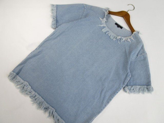 - 美品 ディスパーク dispark 五分袖 ラウンドネック デニムチュニック F ブルー系 【メール便可】