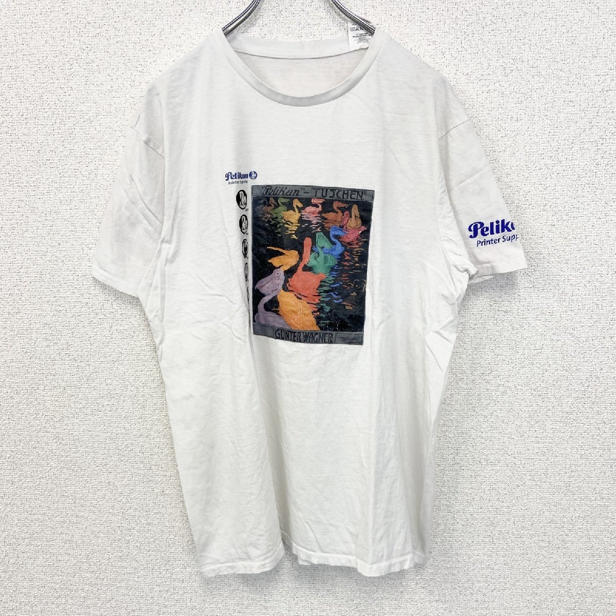 - 古着 used ELEVATE 半袖プリントTシャツ ペリカン カジュアルデザイン 春夏服 クルーネック レトロ 白 Lサイズ
