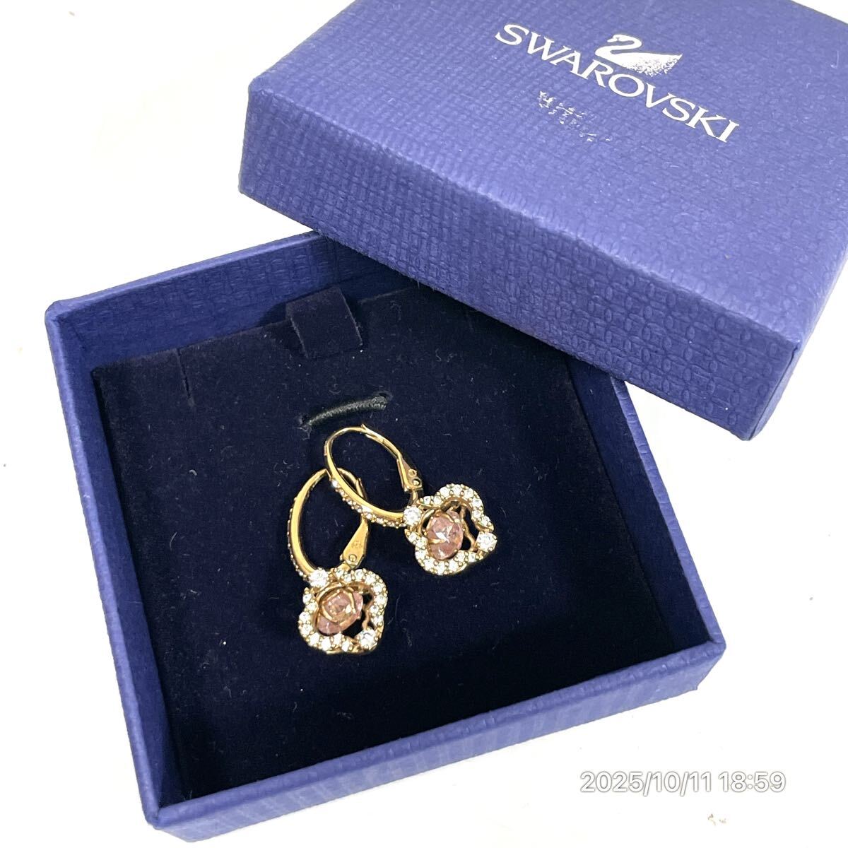 > SWAROVSKI スワロフスキー 四葉モチーフ ゴールドカラーボディ ゆらゆら ピアス イヤリング アクセサリー 装飾品 箱付き