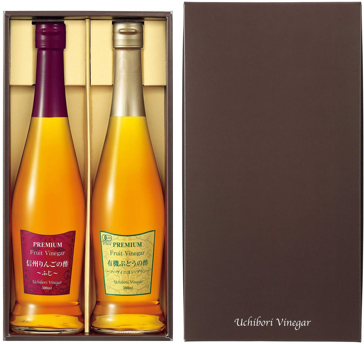 - 内堀醸造 プレミアムフルーツビネガー 信州りんごの酢ふじ、有機ソーヴィニヨン・ブランの酢 500ml各1本ずつ 2本箱