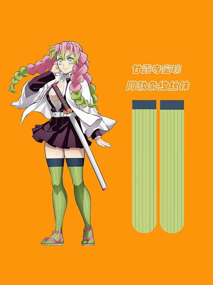 > 【鬼滅の刃 コスプレ】甘露寺蜜璃(かのろじ みつり) 縞模様 ソックス ロングサイズ (総丈75cm)