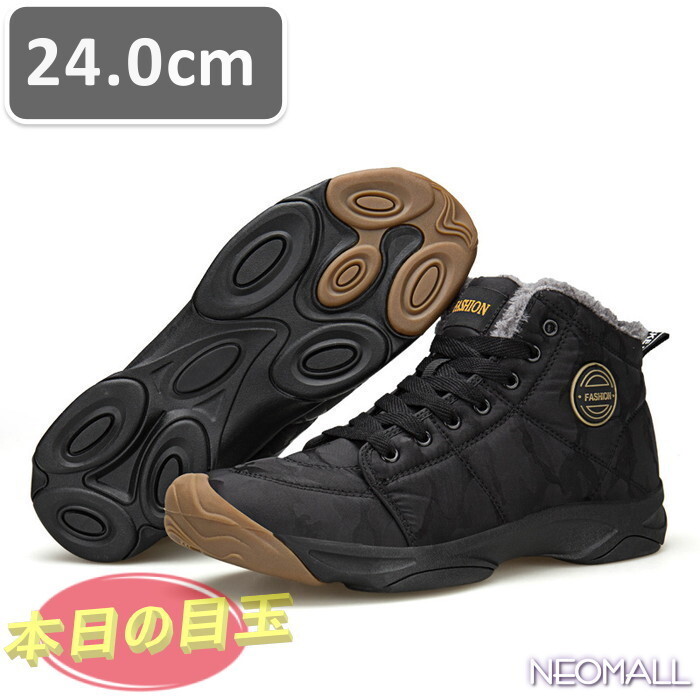 - メンズ スノーシューズ 【864】 24.0cm 迷彩ブラック ムートンブーツ スニーカー ウィンターブーツ 裏起毛 防水 防寒 防滑 冬用靴 綿靴