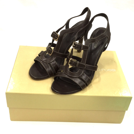> セルジオロッシ サイズ 37 1/2 レザー ストラップ ヒール サンダル レディース ブラウン 保存箱付き Sergio rossi