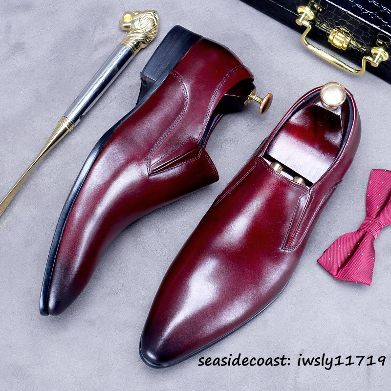 - 超希少◆定価11万 メンズ ビジネスシューズ 高級牛革 ローファー スリッポン 本革 レザーシューズ 個性 紳士靴 革靴 新品 レッド 28.0cm