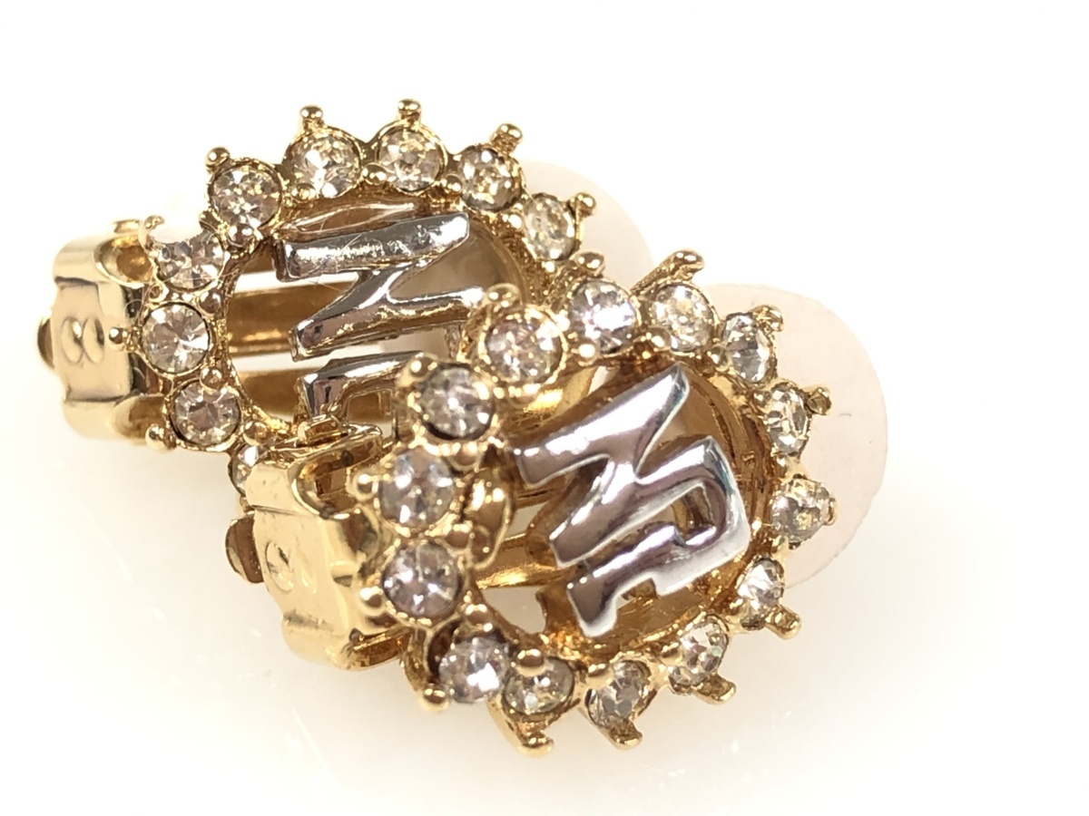 - 美品 ニナリッチ NINA RICCI ロゴ イヤリング ゴールドカラー×シルバーカラー×ラインストーン YAS-1564