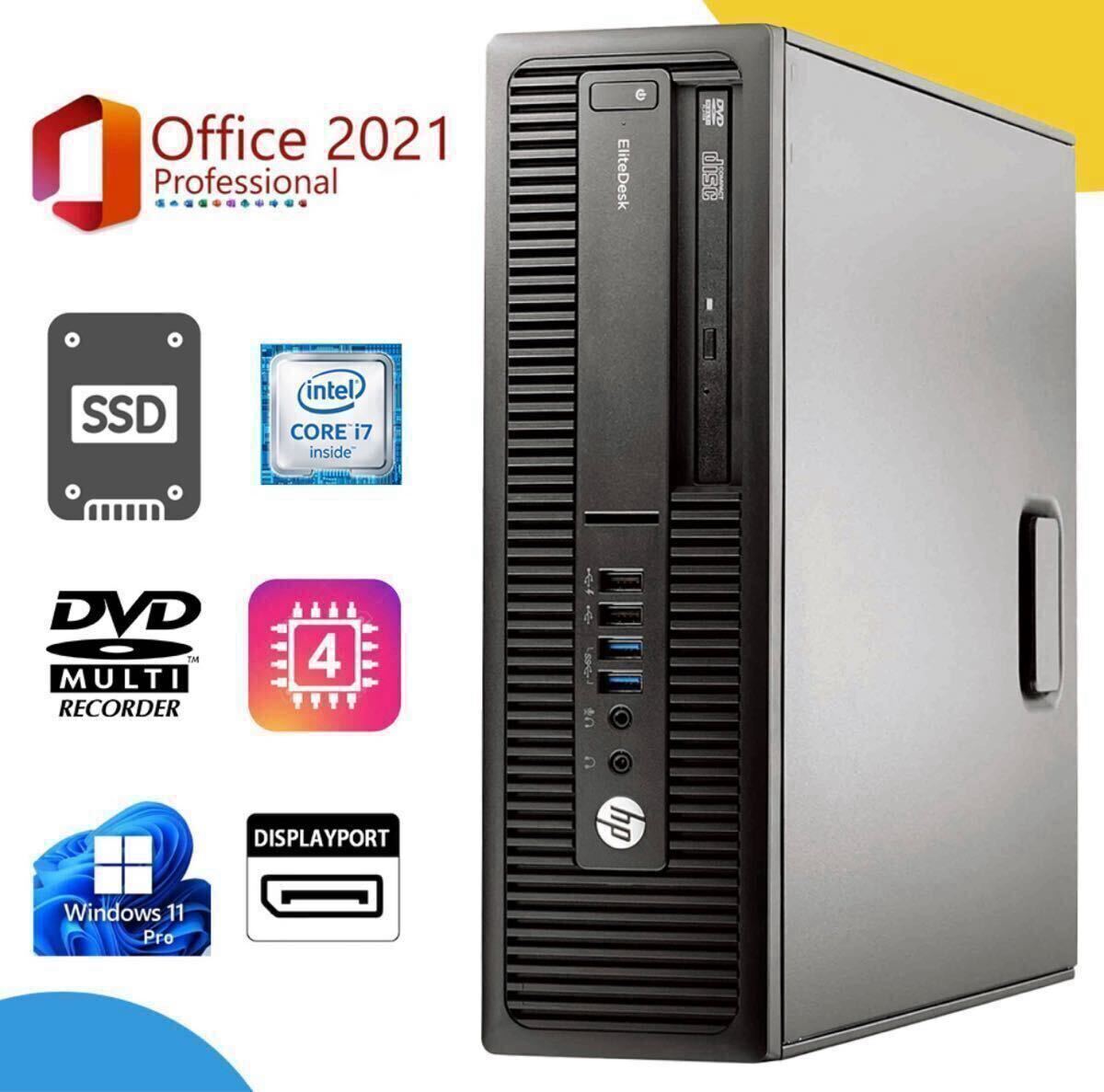 > 強力HP EliteDesk 800/600G2/高性能Core i7 - 6700 □SSD240GB + HDD 1TB□メモリ16GB□Win11Pro □Office2021 /無線Wi-Fi 6/Bluetooth搭載