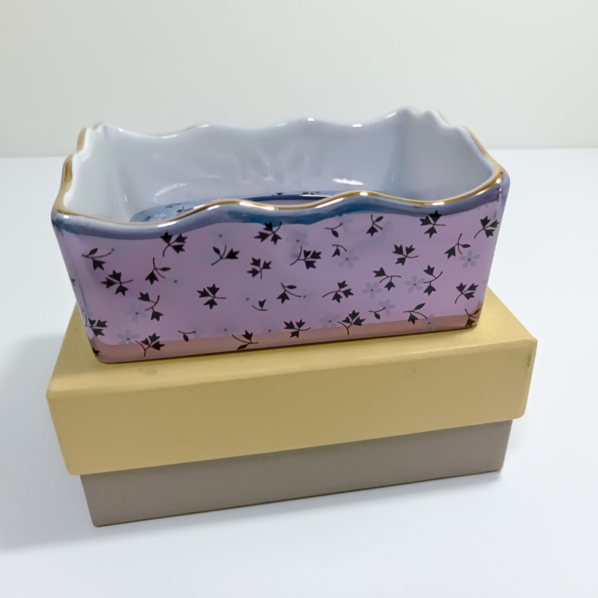 > パープルメッキ小花柄 陶器製 ポケットティッシュケース 未使用品 [小型ティッシュボックス ポケットティッシュ入れ コスメ]