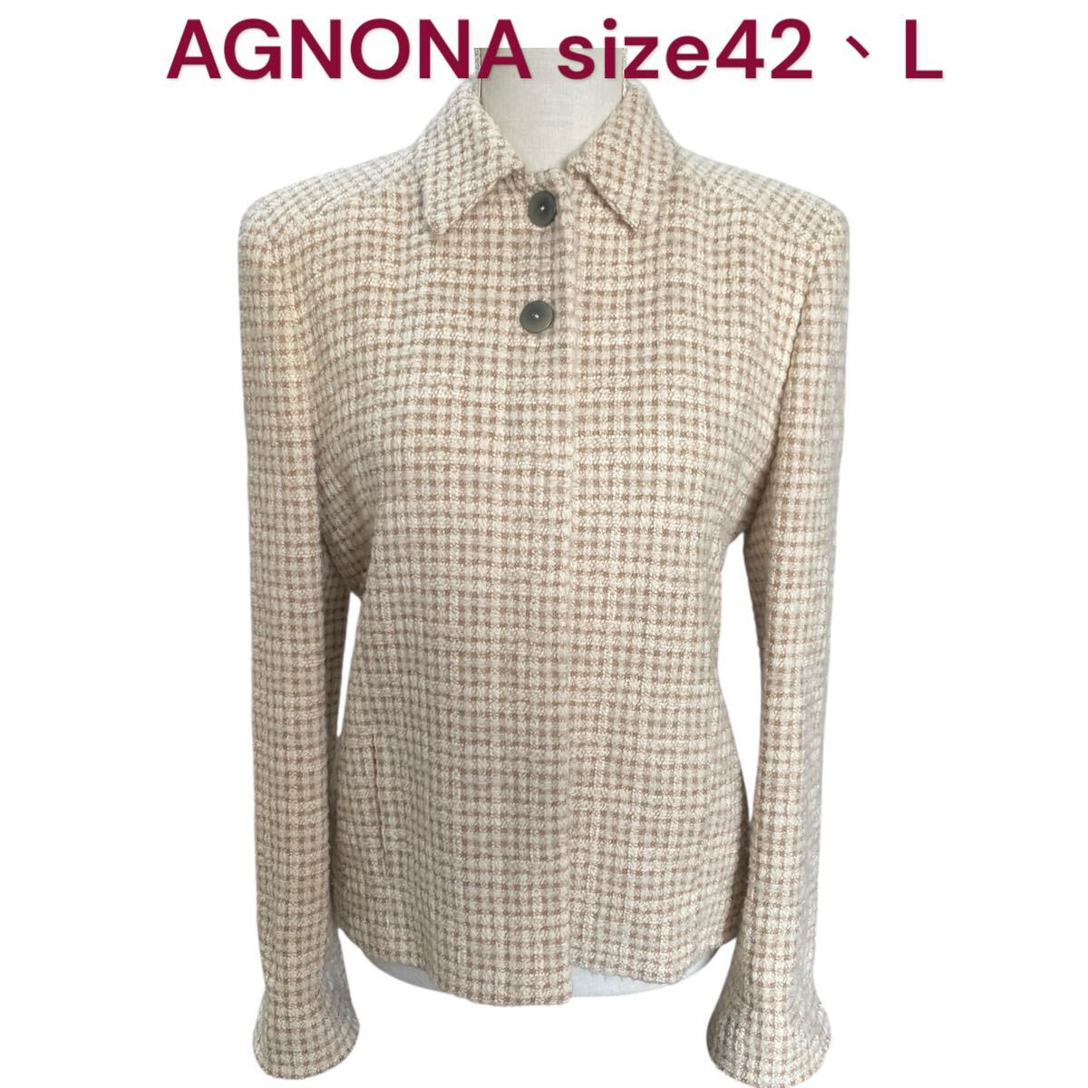 - 美品 アニオナ 高級 ツイード ジャケット ウール、シルク 42、L、11号 AGNONA