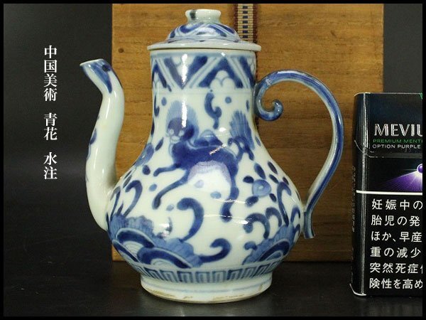 - 【銀閣】中国美術 青花 水注 高13cm 旧家蔵出 送料無料(ZE325)