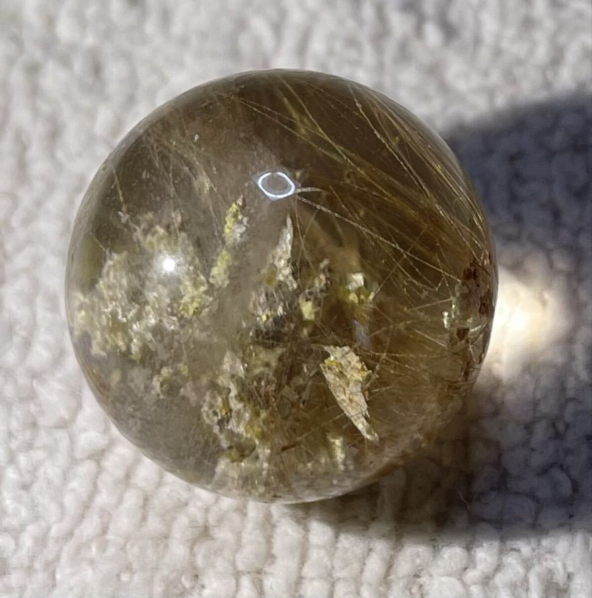 - タイチンルチルクォーツ 丸玉 058 水晶 クリスタル 天然石 魔除 財運 金運 パワーストーン 幸運 風水晶 ガーデンクォーツ共生