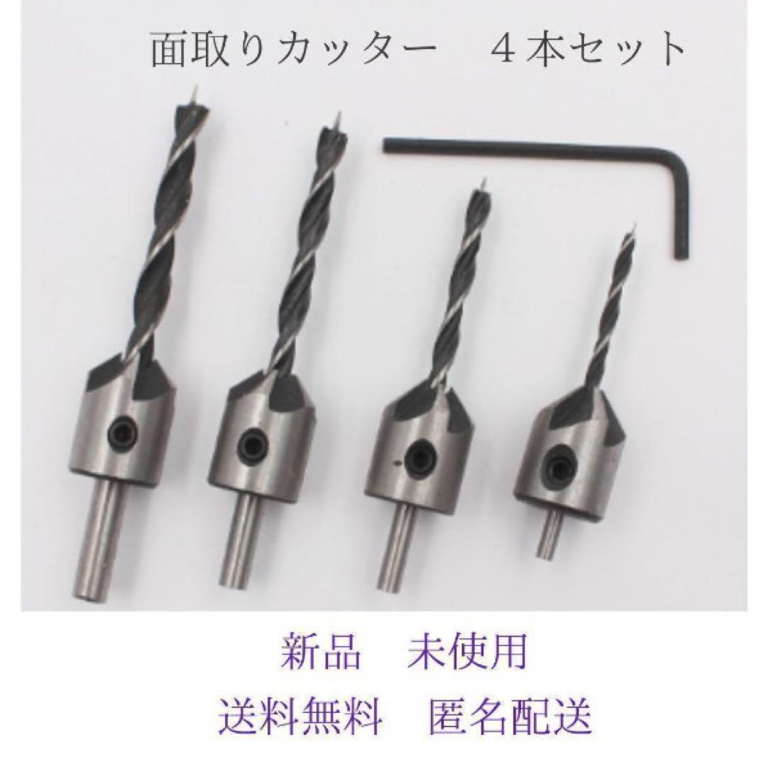 - 新品 未使用 面取り カッター 皿取り 穴あけ ドリル ビット 4本セット 錐