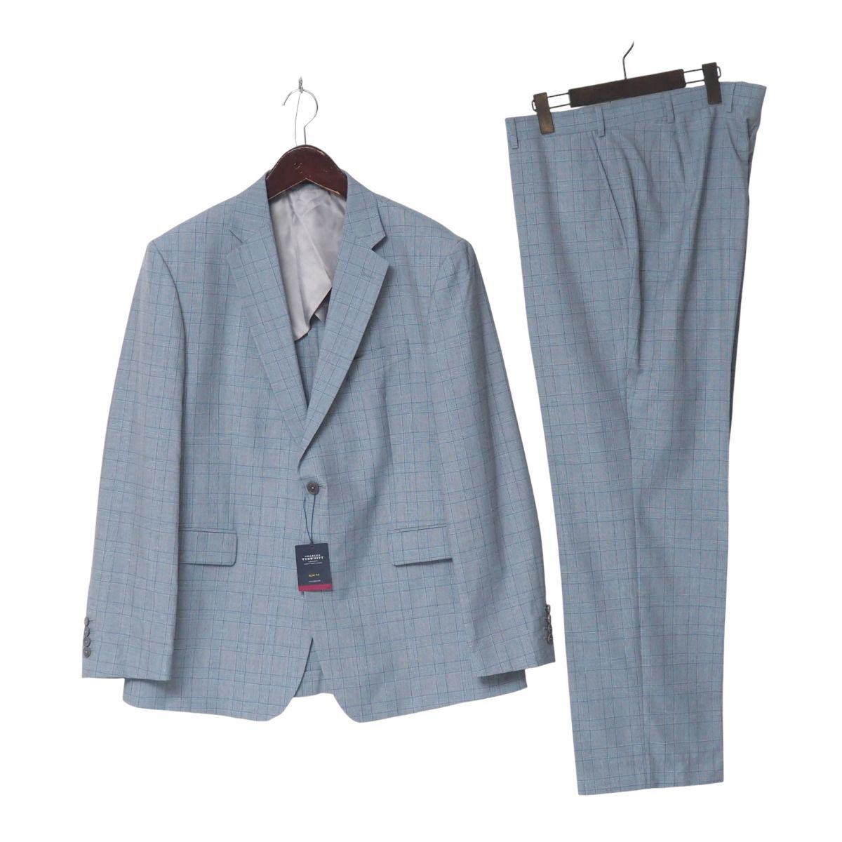 > MI1872◎CHARLES TYRWHITT チャールズ ティルウィット ウールリネン スラブ チェック柄 2B シングル スーツ セットアップ ブルー系