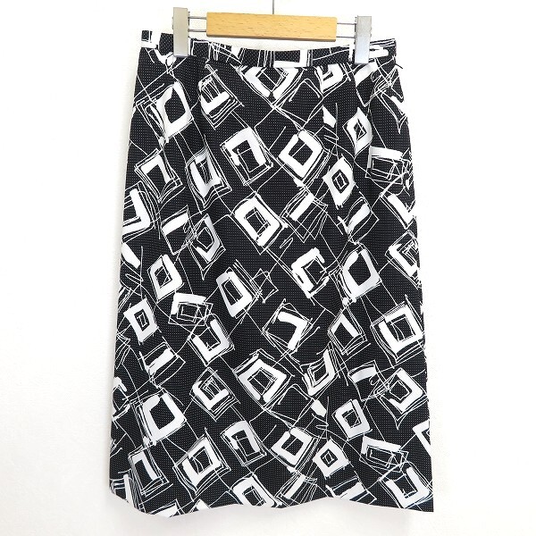 > #a レリアン Leilian スカート 11号 黒 白 総柄 ドット GESSNER スイス製生地 サイドスリット 936396 k01