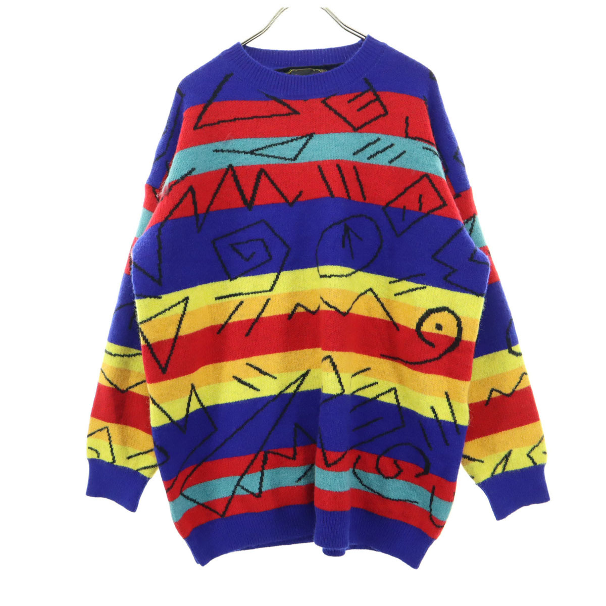 Libby & Rose リビーアンドローズ 総柄 ボーダー柄 長袖 セーター ブルー メンズ