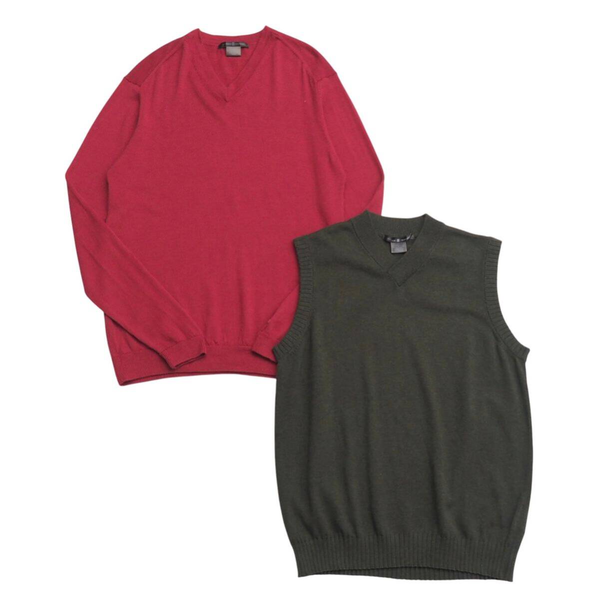 - TJ5366▽タイガーウッズ TIGER WOODS/ナイキゴルフ NIKE GOLF メンズL 2点セット ウール Vネックセーター + コットン ニットベスト