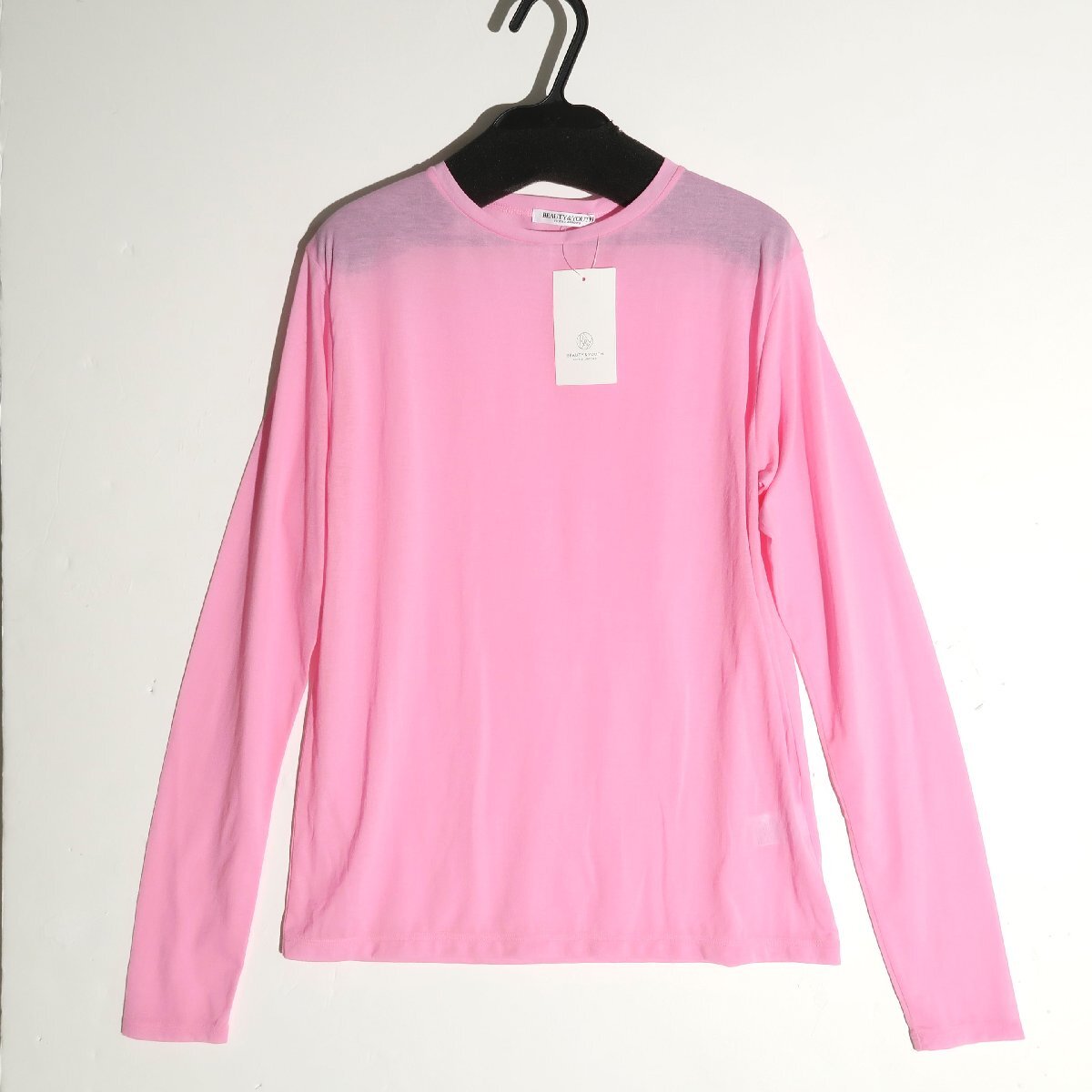 > 【タグ付・新品・定価7,700円】BEAUTY&YOUTH コットンナイロン天竺 シアー クルーネック Tシャツ 1612-299-5162 ピンク カットソー