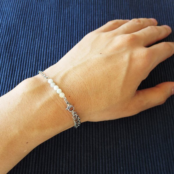 - ステンレスブレスレット アマゾナイト PB53 全長約20cm(17+3cmアジャスター)