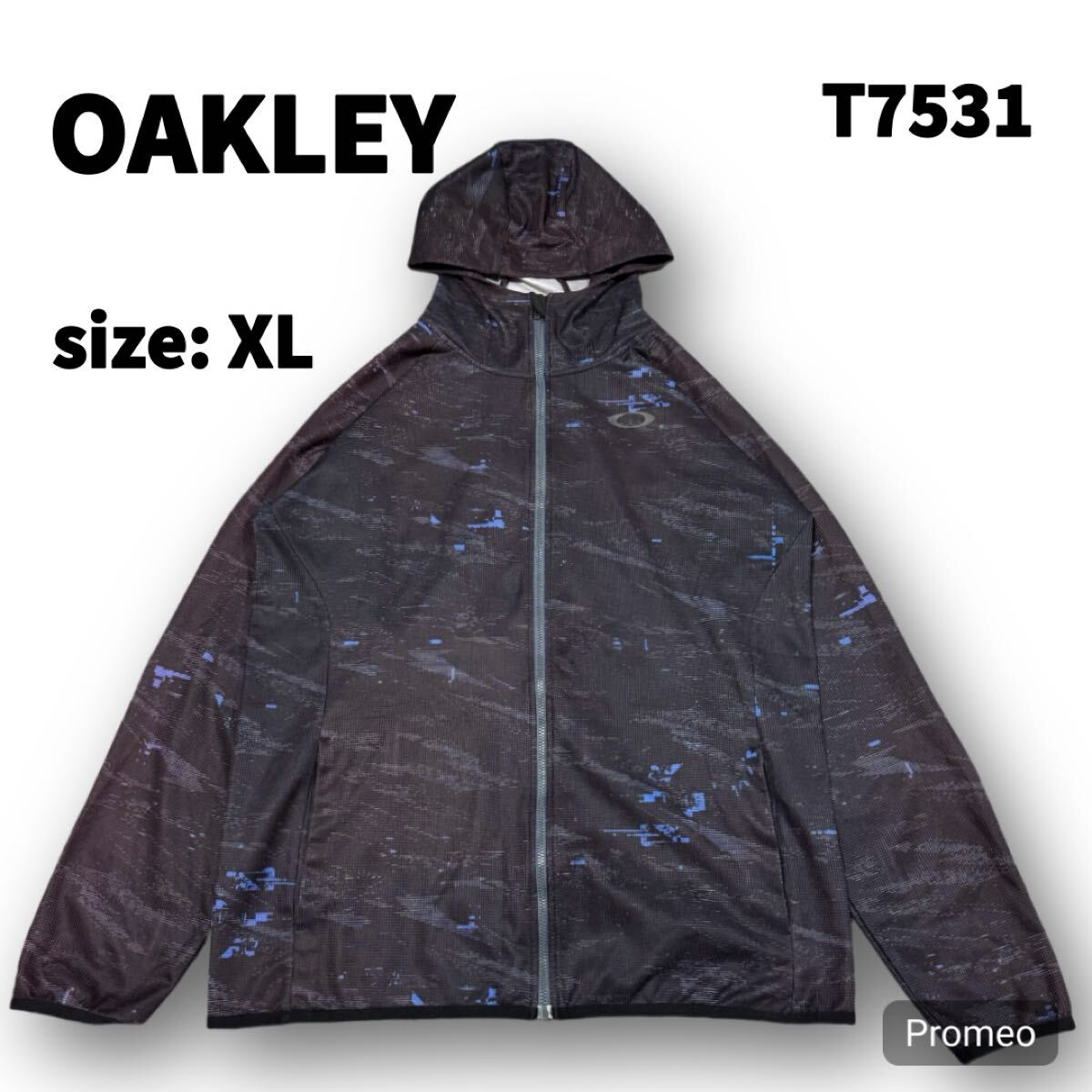 > 【T7531】 OAKLEY オークリー パーカー サイズXL ブラック 黒 ドライジップパーカー デジタル柄 メンズ トップス 最落なし 古着