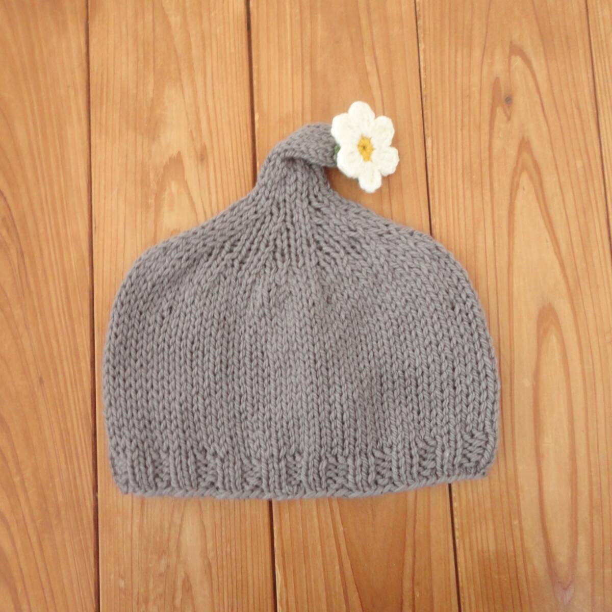 - てっぺんに花が咲いた▲ニット帽*グレー*キッズサイズ*ハンドメイド*b925