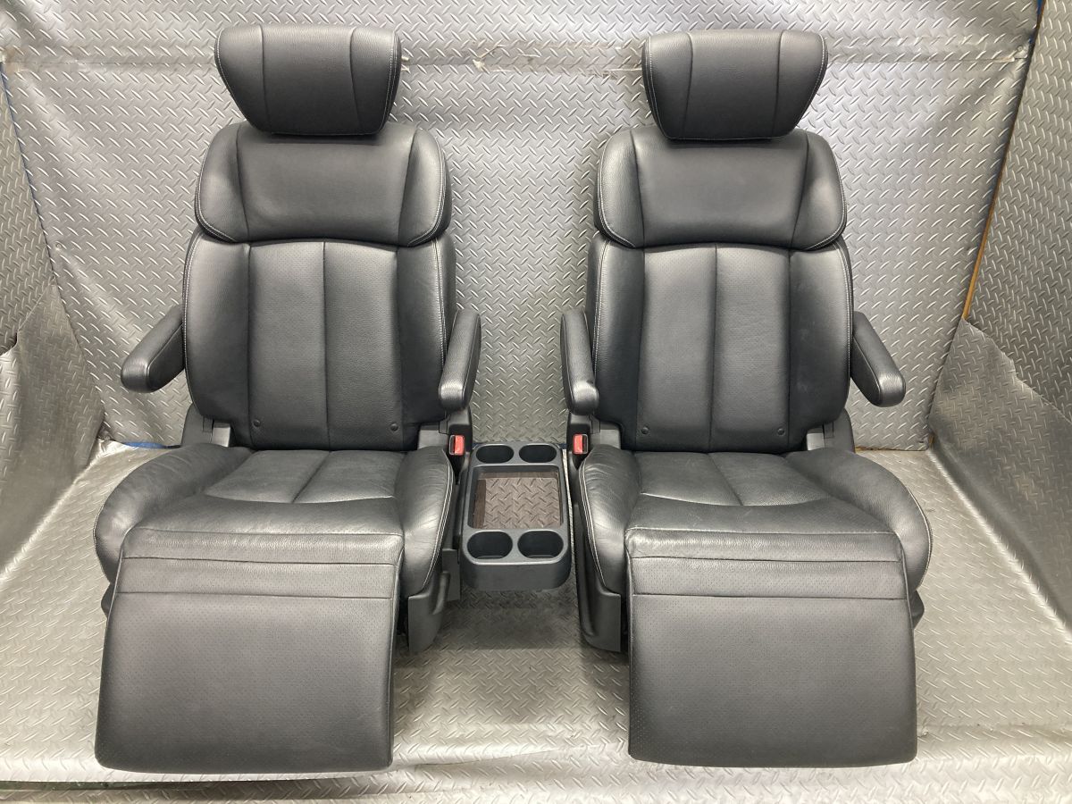 > 日産 TE52 エルグランド ハイウェイスター ブラックレザー 純正 レザー 革 2列目 キャプテン セカンド シート アームレスト オットマン 付