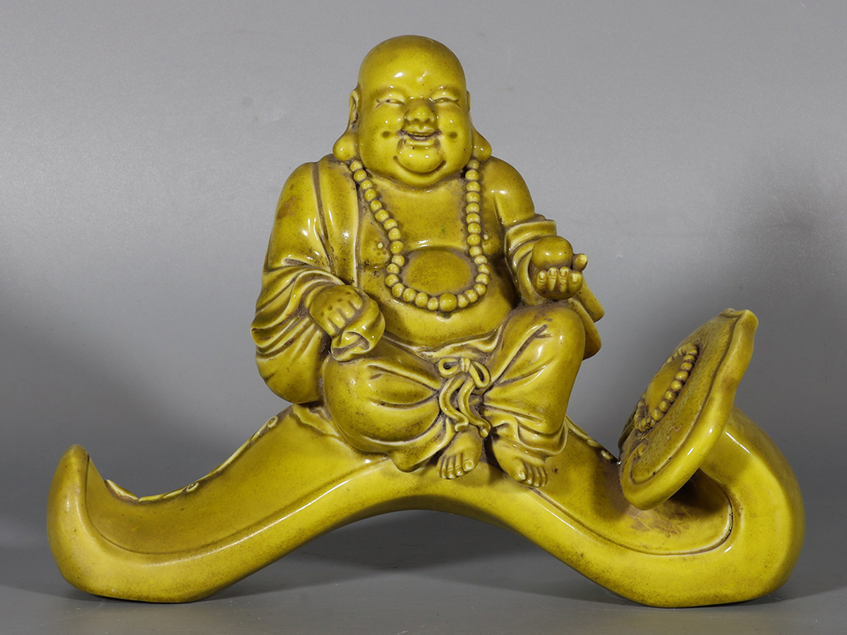 - ▽鴻▽清時代 陶磁器 黄釉弥勒仏造像 共箱 時代物 中国古美術 骨董品