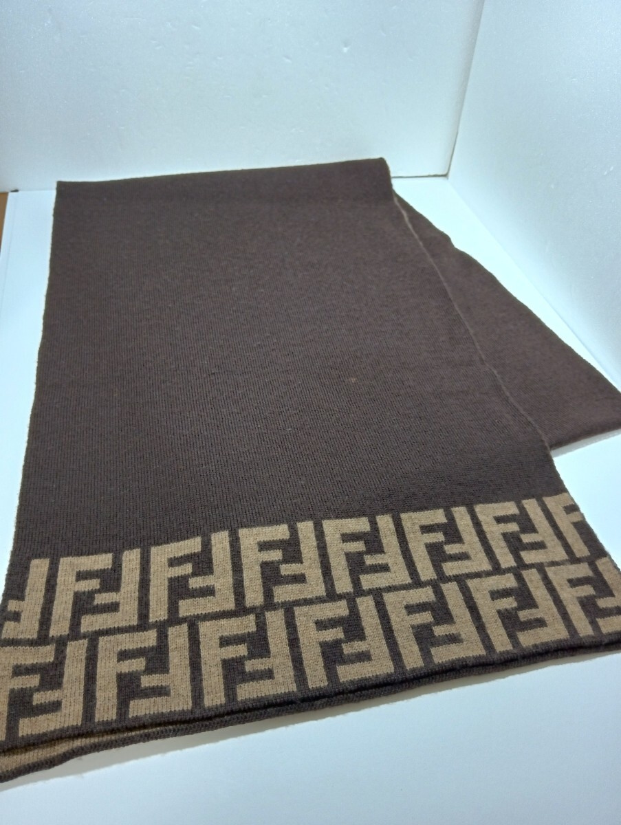 - 1円【現状品/タグあり】FENDI フェンディ マフラー ブラウン系 ズッカ ウール100%