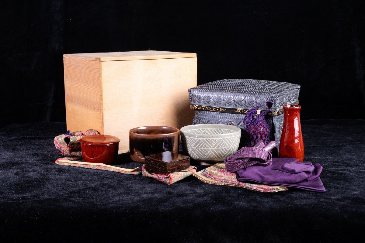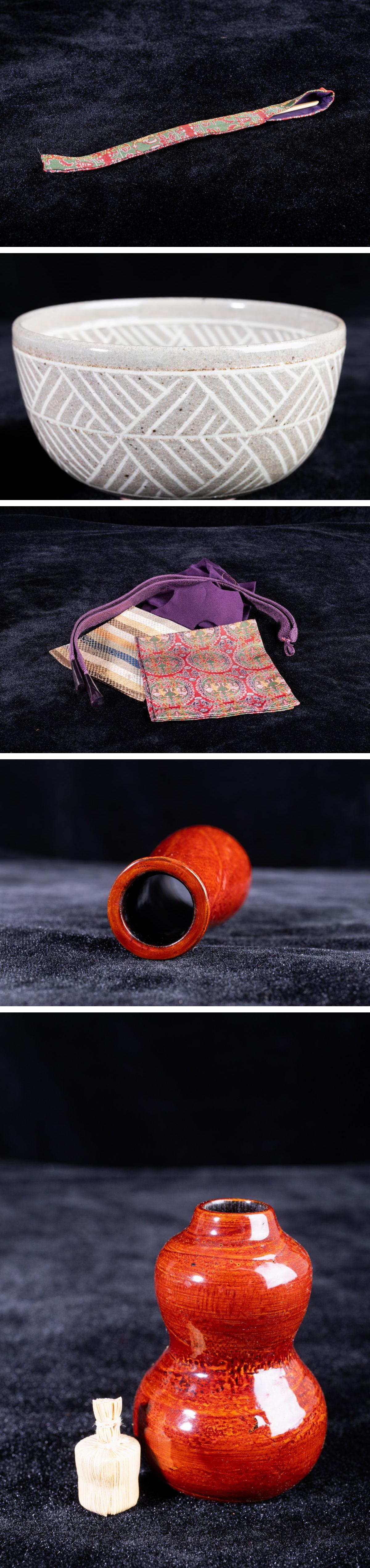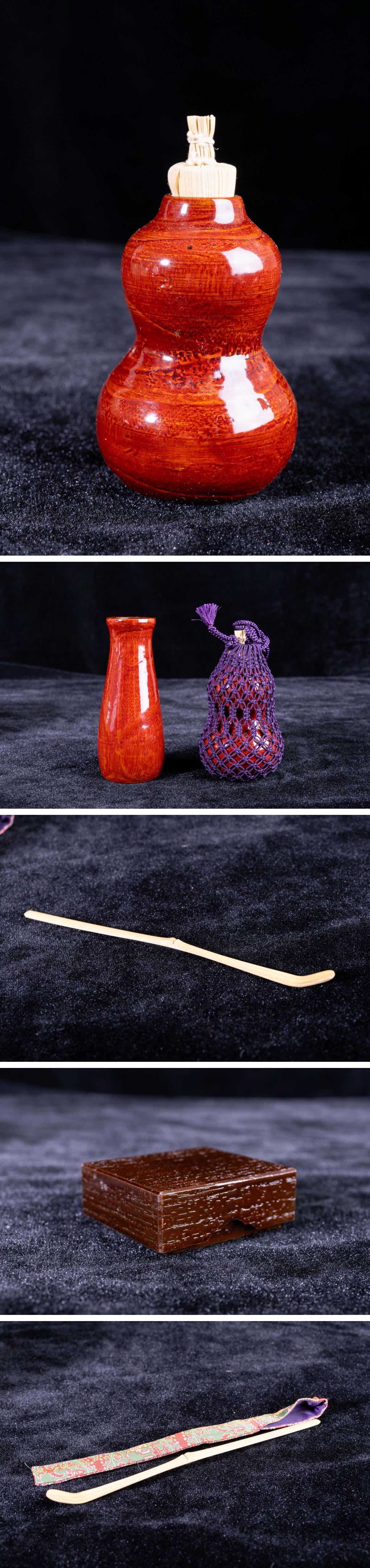 - 【珍品堂】1円から M82-V28 茶道具 平安 栗田元竺作 御所籠 皆具添 仕覆付 野点籠セット 煎茶道具 茶籠 竹編 収納箱 棗 香合 茶筅筒 振出