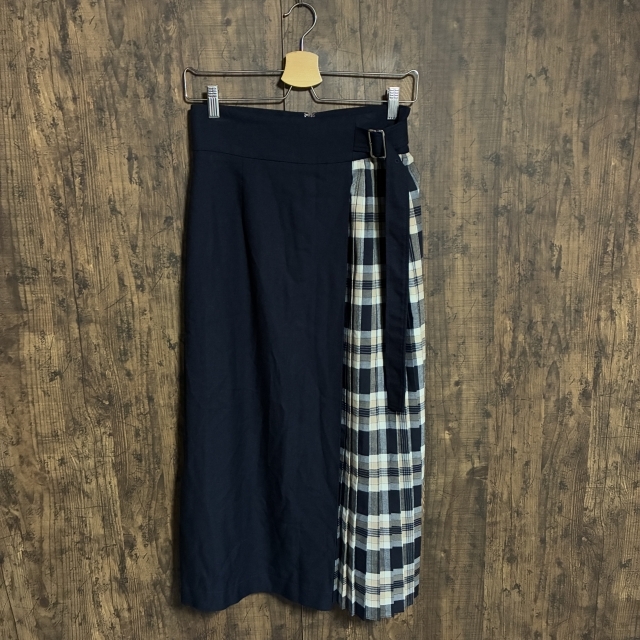 - C48◇PLST | プラステ ラップスカート チェック柄切り替え ネイビー×ベージュ系 レディース Mサイズ 中古品