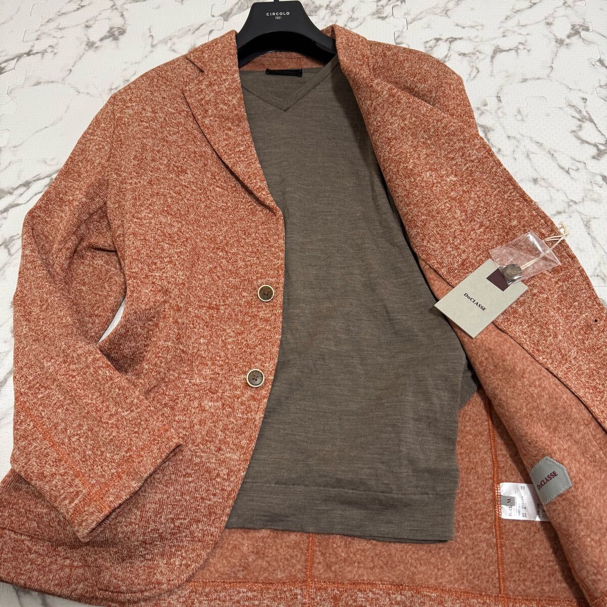 - タグ付き未使用/XL/DoCLASSE ワッフル ジャージー アンコン テーラードジャケット パイピング 裏起毛 オレンジ メンズ ドゥクラッセ 霜降