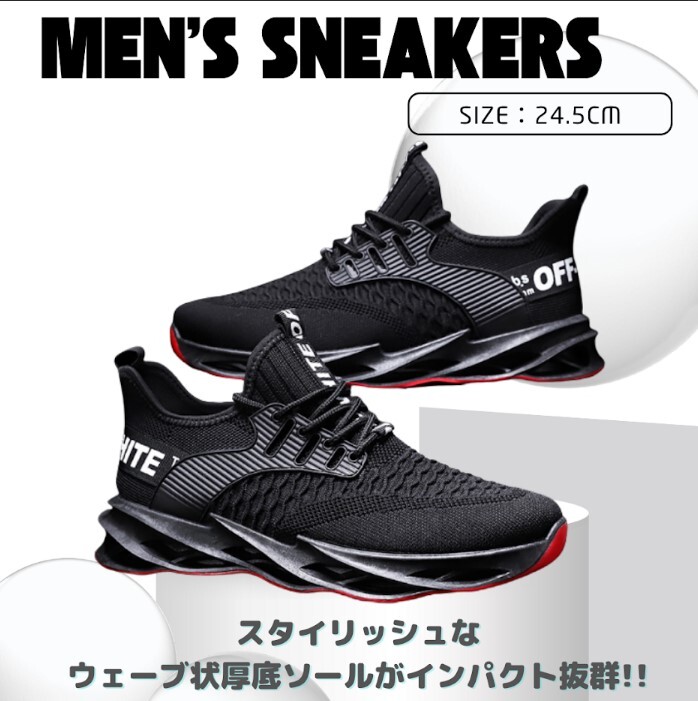 - 【24.5cm/ブラック】メンズ スニーカー ランニング 軽量 厚底 ブレード