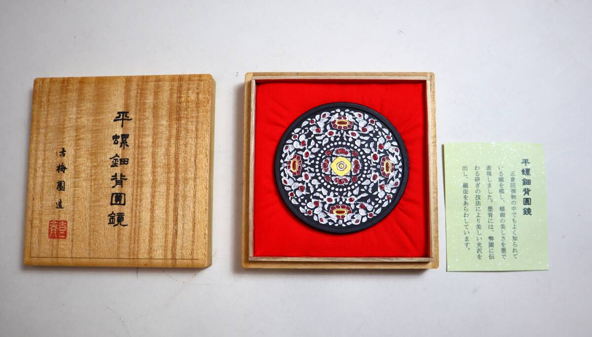 - 書道 墨 日本製 古梅園 『平螺鈿背円鏡』 74g 正倉院御物模造