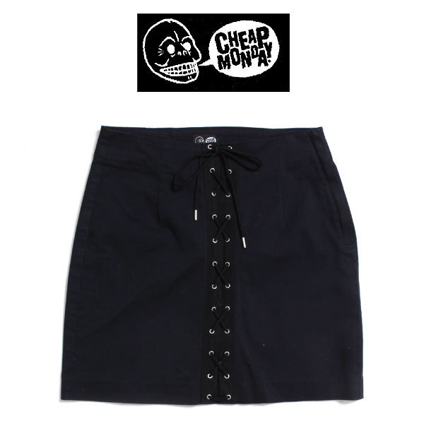 - ◆CHEAP MONDAY Valerie Skirt sizeS ブラック 0115108 チープマンデー レースアップミニスカート