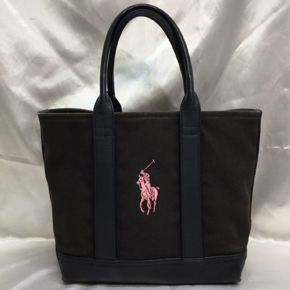 - 【中古/現状品/TO】RALPH LAUREN ラルフローレン トートバッグ キャンバス ブラック×ダークブラウン系 手提げ レディース MZ1014/001